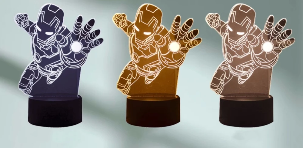 Light up your space with this 3D superhero LED night light, featuring stunning designs of Iron Man, Superman, and other iconic heroes. Perfect for bedrooms, gaming rooms, or as a unique gift, this lamp creates a cool ambiance with vibrant lighting effects. Ideal for kids, superhero fans, and collectors.